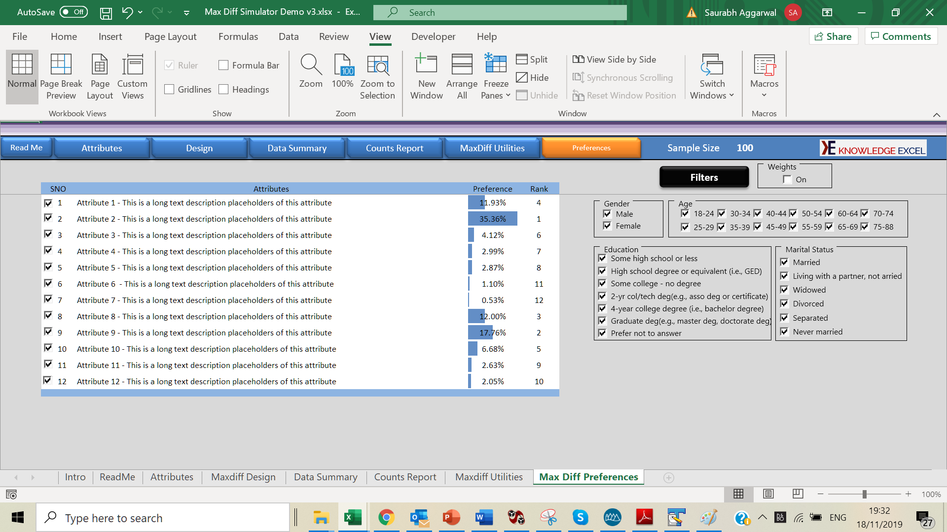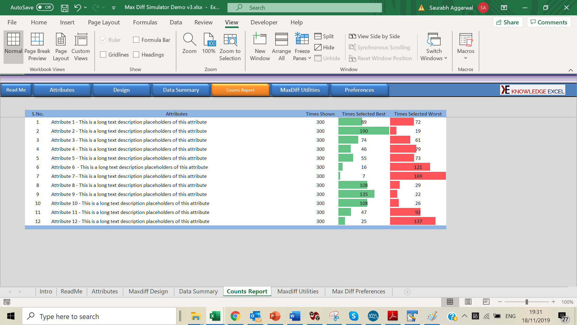 Simulators transform the utility data from your max diff study into a tangible tool that you and your end-clients can use. Because it is in Excel, you can easily share it with colleagues and end-clients to maximize use.